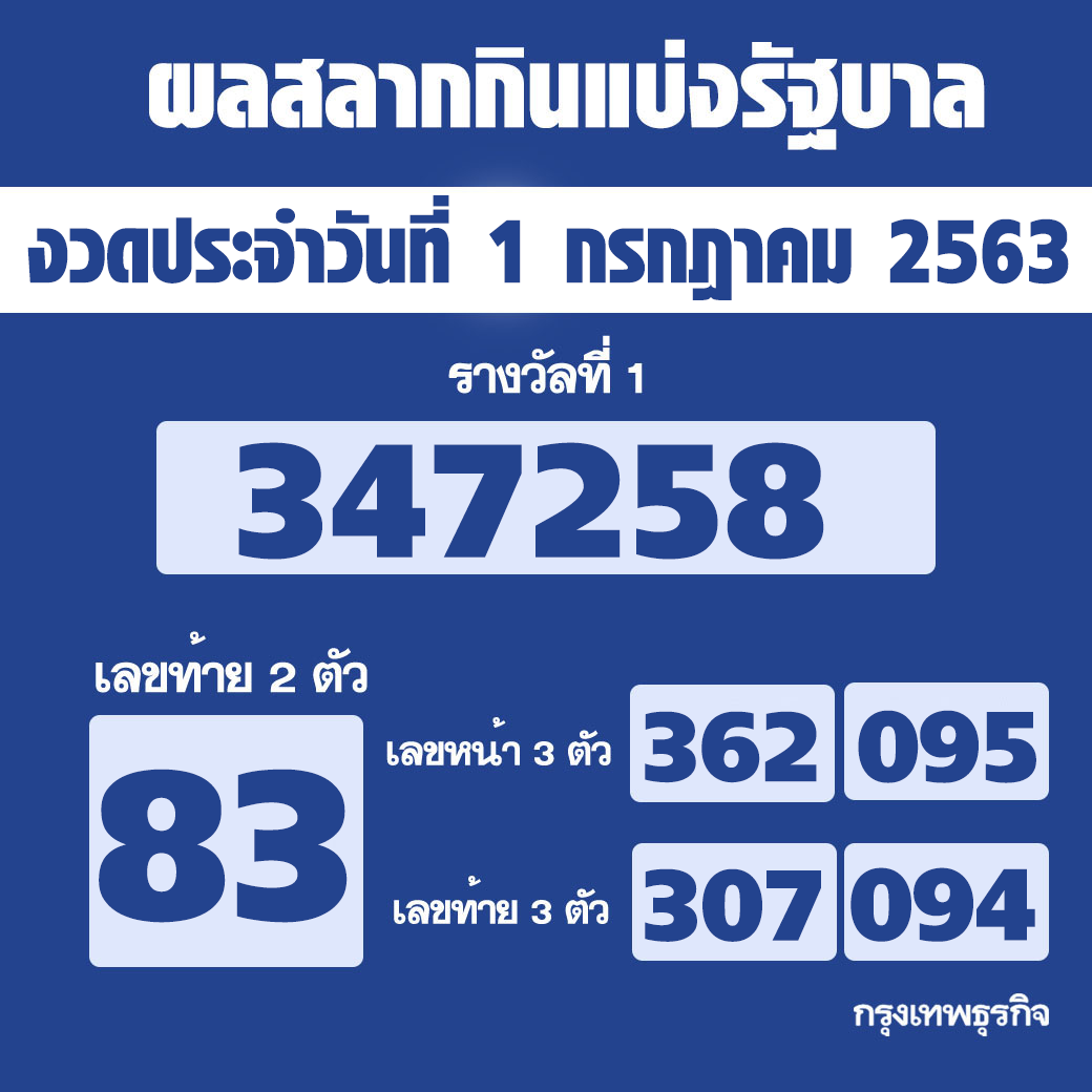 ตรวจหวย ผลสลากก นแบ งร ฐบาล งวดประจำว นท 1 กรกฎาคม 2563